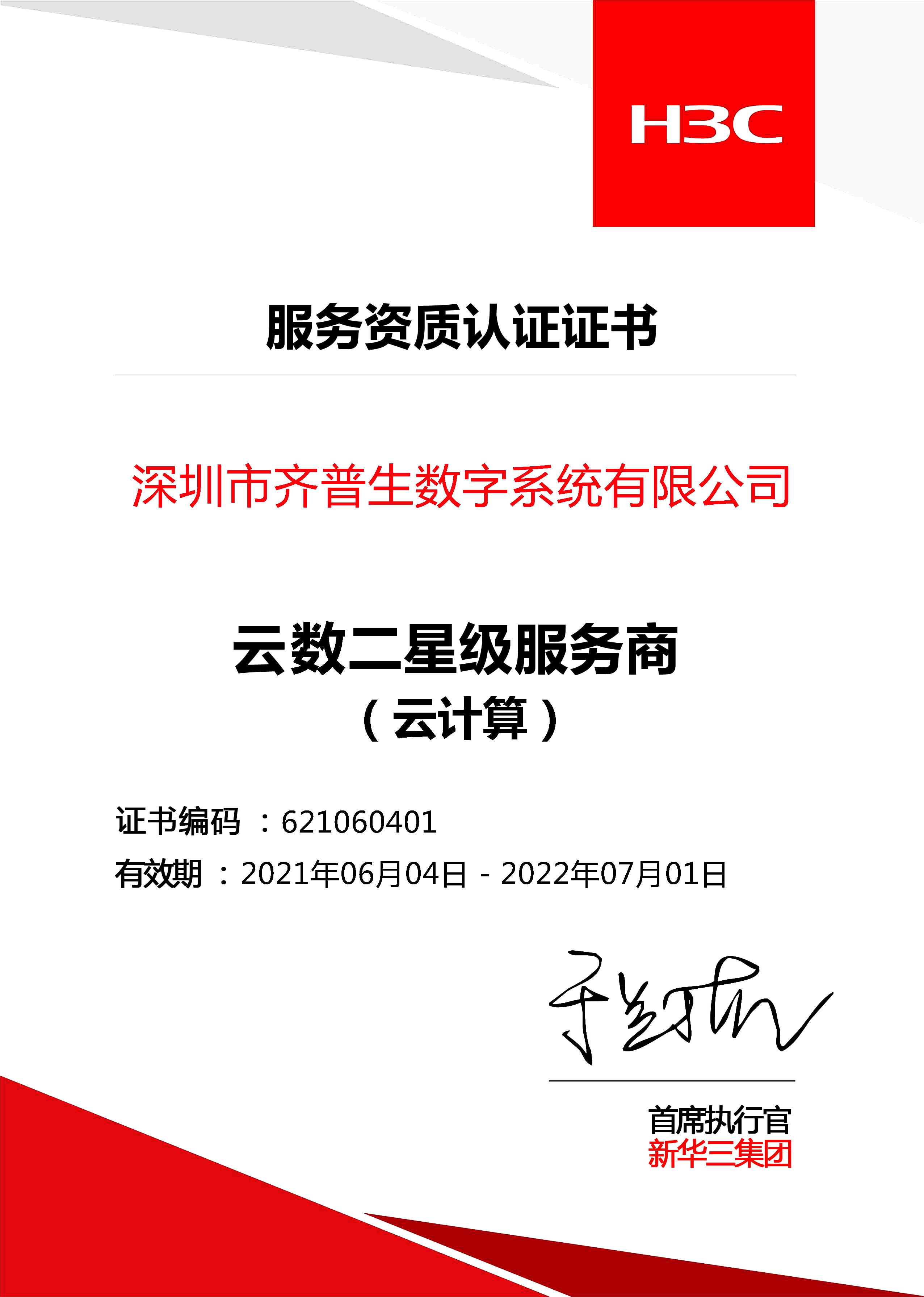 H3C總代證書(珠海公司)