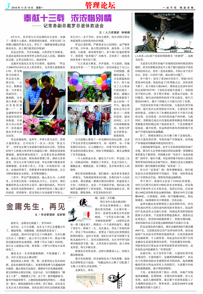 奉獻十三載 濃濃惜別情 ——記常務(wù)副總裁羅總退休歡送會