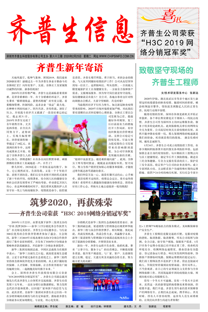 筑夢2020,再獲殊榮 ——齊普生公司榮獲“H3C2019網(wǎng)絡分銷冠軍獎”